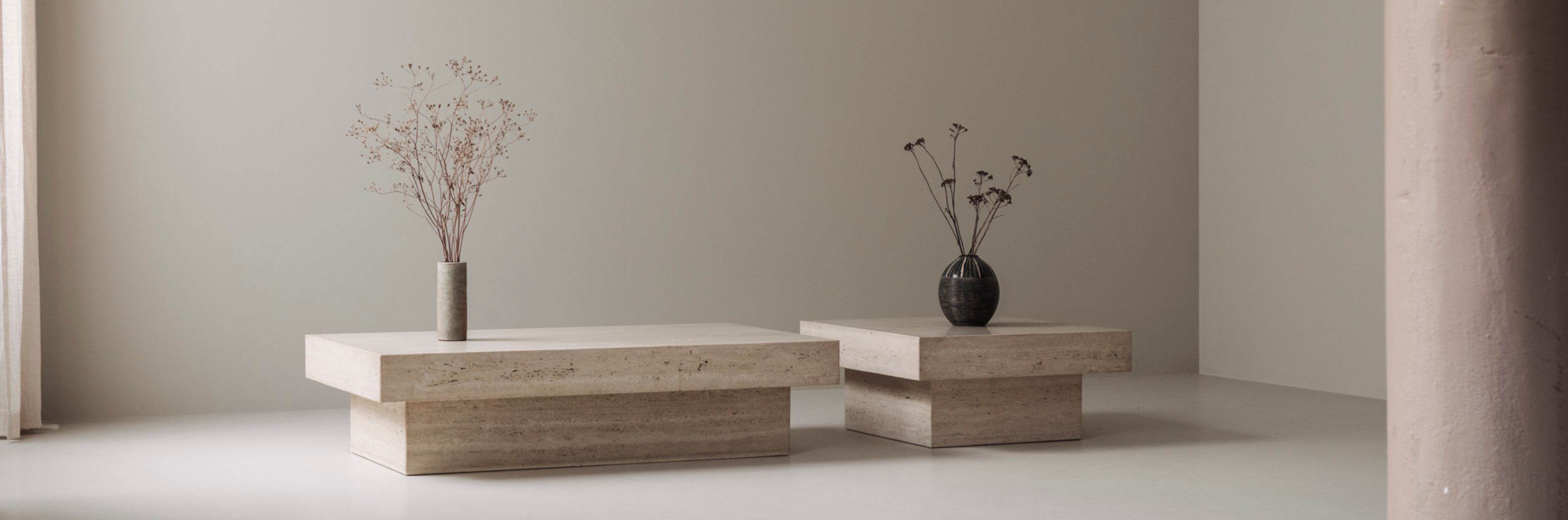 Discover our collection of handmade travertine tables, including coffee tables, side tables,...